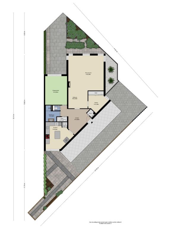- achtertuin met een oppervlakte van 57 m² en is gelegen op het zuiden